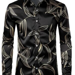 Men’s Geek Rose Gold Shiny Flowered Printed Stylish Slim Fit Long Sleeve Button Down Shirt
