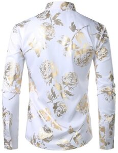 Men’s Geek Rose Gold Shiny Flowered Printed Stylish Slim Fit Long Sleeve Button Down Shirt