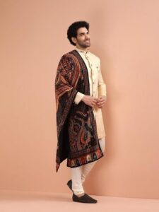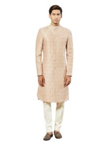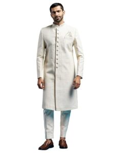 Men’s Silk Blend Sherwani Churidar Set with Dupatta