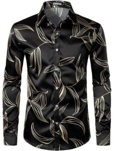 Men’s Hipster Design Silk Like Satin Button Up Dress Shirt for Party Prom ZLCL31-108-Black XX-Large