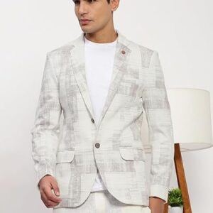 Men’s Off White Printed Single-Breasted Blazer-LBR-2468_OffWhite
