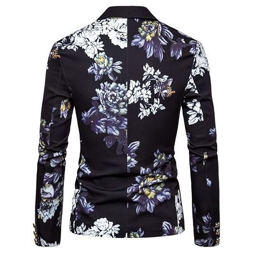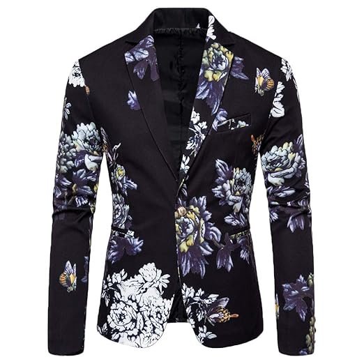 Blazer Mens Suit Jacket Slim Fit Vintage Printed One Button Floral Casual Outfits Sports Coat |Black |L