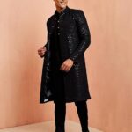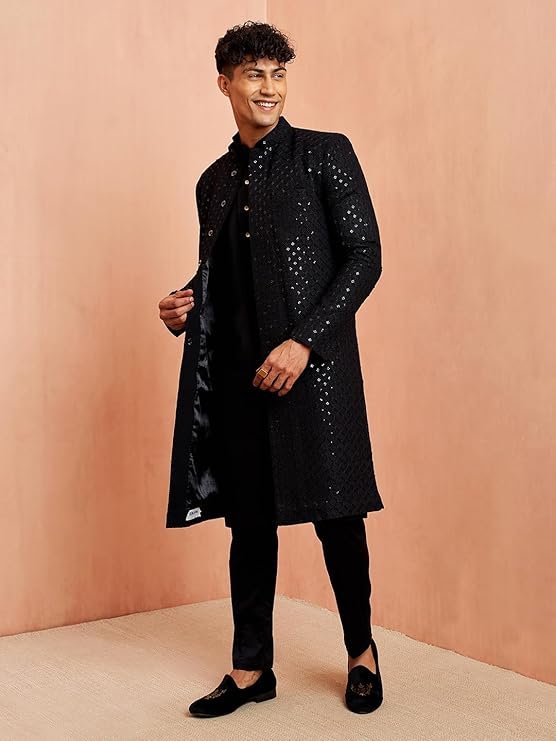 Men Sequin Chikankari Sherwani with Silk Kurta & Satin Pyjama | Premium 3-Piece Wedding Set