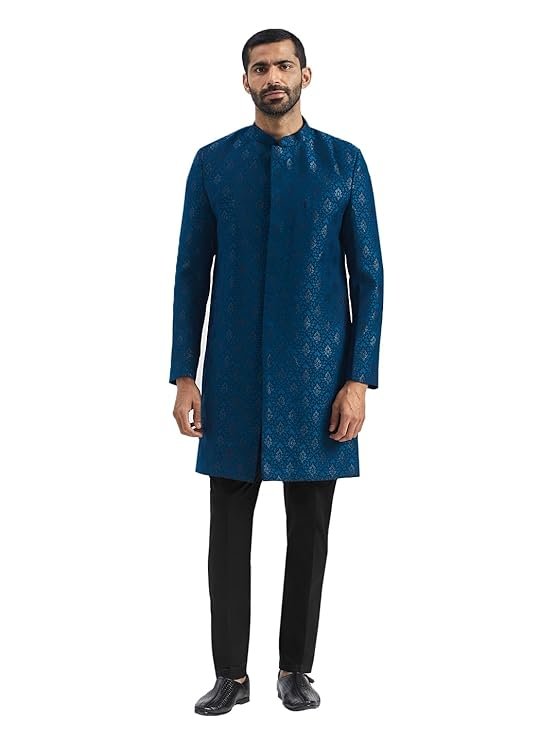 Men’s And Silk Blend Sherwani Set, Silk Blend Jacquard Indo Western With Pant style Pyjama for Men for Weddings & Festivals, Traditional Ethnic Wear Outfit