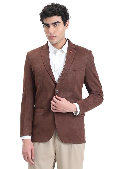 Men’s Brown Single-Breasted Slim Fit Blazer with Notched Lapel-LBR-2464_Brown