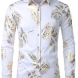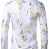 Men’s Geek Rose Gold Shiny Flowered Printed Stylish Slim Fit Long Sleeve Button Down Shirt