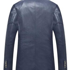 Men’s Casual Notched Collar 2 Button Slim Moto Faux Leather Blazer Suit Jacket Navy Blue