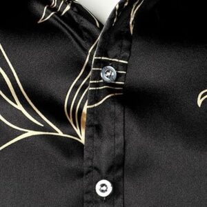 Men’s Hipster Design Silk Like Satin Button Up Dress Shirt for Party Prom ZLCL31-108-Black XX-Large